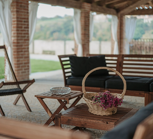 The outdoor areas are just as enchanting: elegant terraces and covered porches invite you to enjoy al fresco dining or unwind while surrounded by nature. The garden is ideal for outdoor activities, while the cozy tavern room, defined by exposed brick, offers the perfect setting for evenings with friends and family.